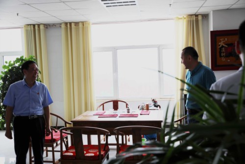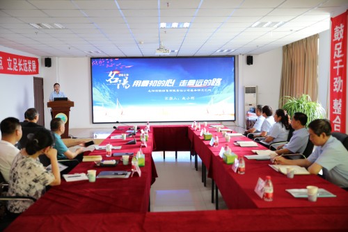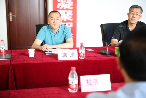 施强一行首先视察了总公司各部门,然后在11楼多功能视频会议室召开了座谈会。