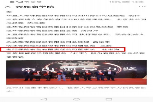 2019年11月8日,以“生态·理性”为主题的“第十二届中国保险文化与品牌创新论坛暨第二届中国保险康养产业创新论坛”在风景如画的广西桂林隆重举行,论坛现场举办了第十四届中国保险创新大奖颁奖盛典。一批在企业文化与品牌建设、产品创新等方面表现优秀的保险企业,以及保险企业的卓越领导者获得了表彰。名阳保险销售有限责任公司在本次论坛中荣获2019年度最佳中介保险品牌!杜书海总裁同时荣获“2019中国保险杰出领导力奖”!