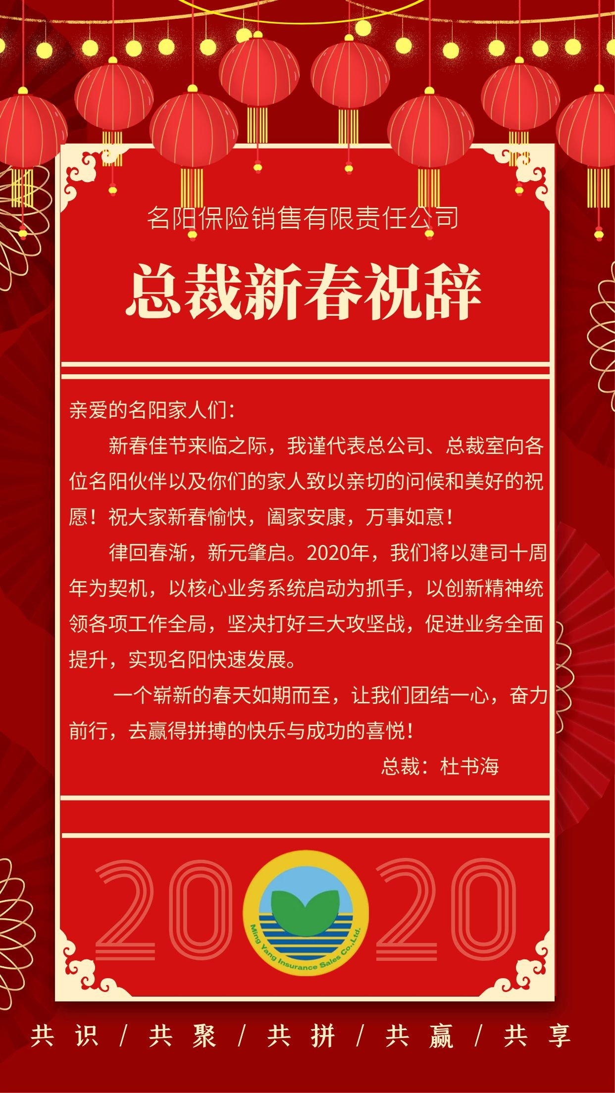 团结一心 奋力前行----二〇二〇年总裁新春祝辞